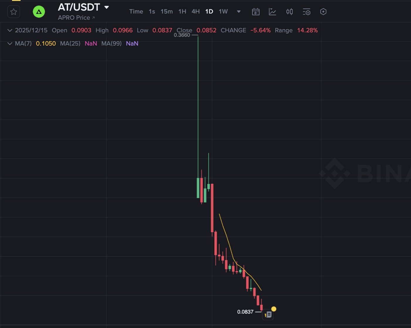 19 1 3.05K Original >Trend of AT after releaseExtremely BullishAPRO is an AI-native oracle, secured $3 million financing, and its token AT is already listed on Binance.