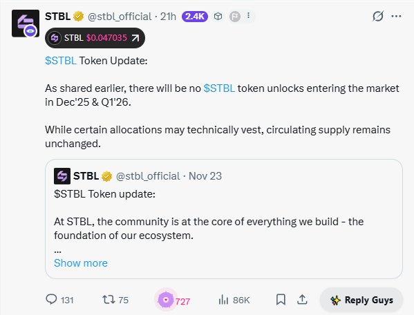 Cointelegraph Media Influencer C2.89M @Cointelegraph109 51 2.34K Original >Trend of STBL after releaseBullish