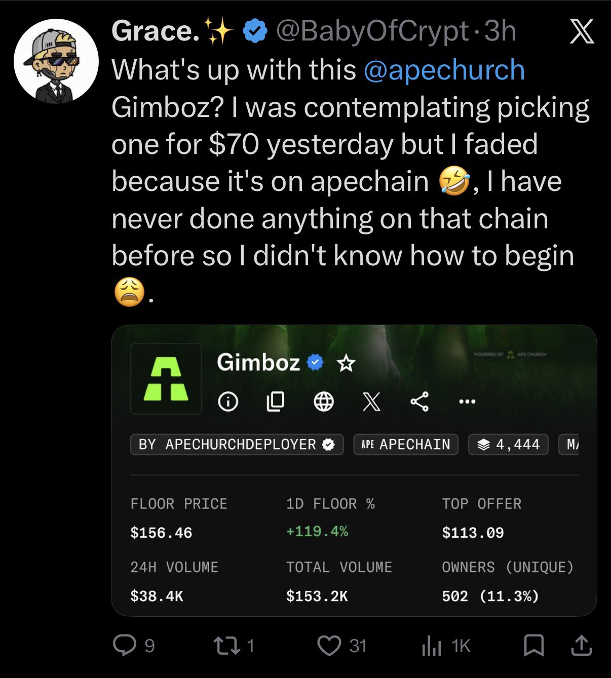 Chanimal 🍌 $APE 🦍 Noya NFT_Expert Influencer B24.87K @JaysonCrypto