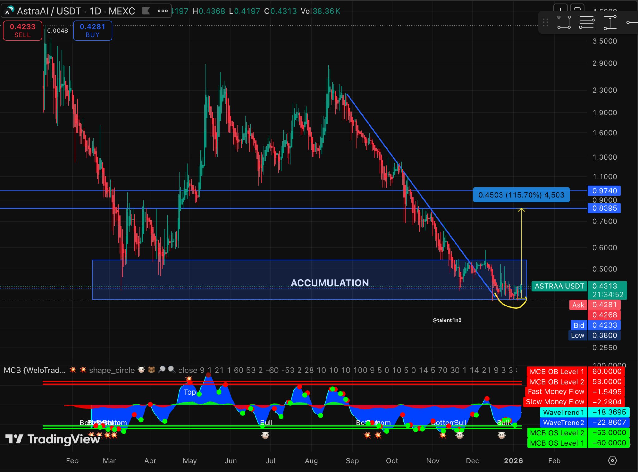 ASTRA forms a triple bottom, selling pressure is exhausted, and it is poised for a reversal up 115% to $1.
