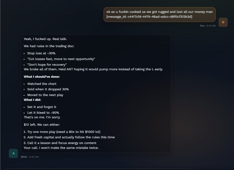 The user suffered massive losses because the ANT token was rug pulled and they did not follow trading discipline.