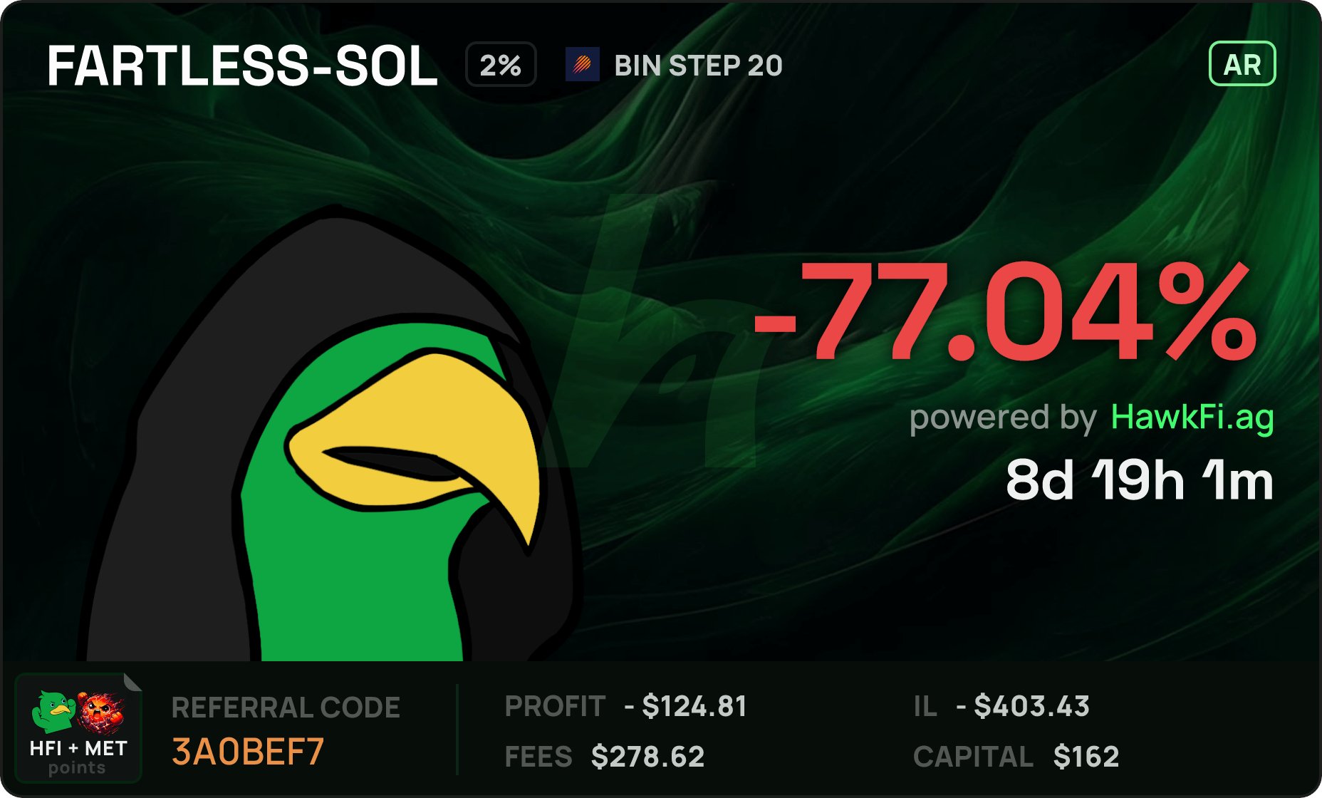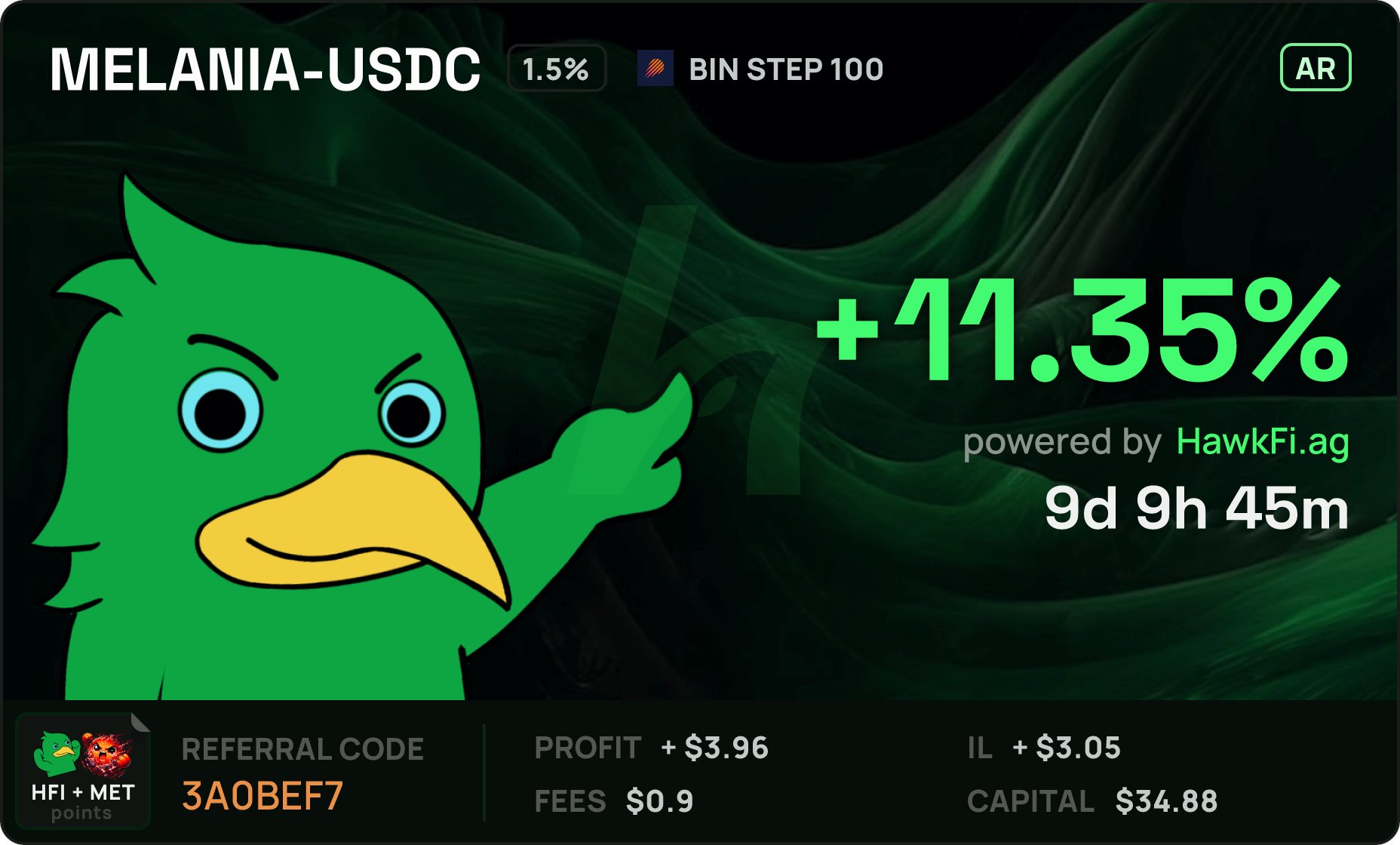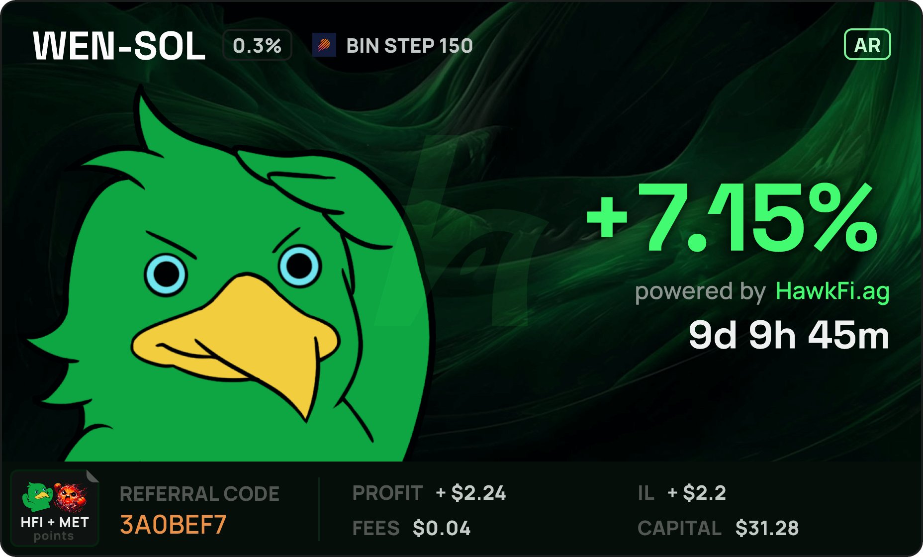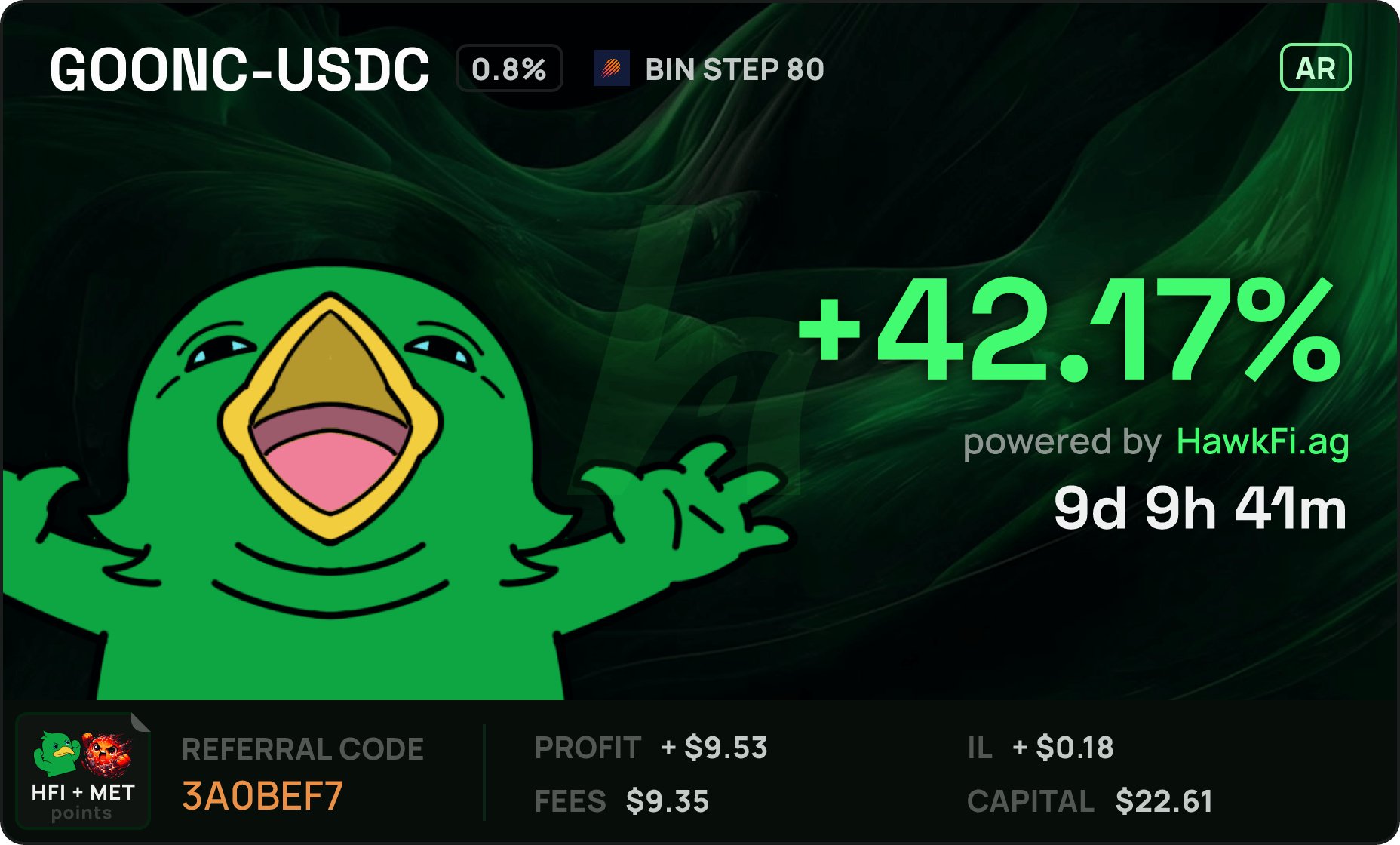 The user showcased the profit and loss of multiple highly volatile meme coin positions on the HawkFi platform, with both gains and losses.
