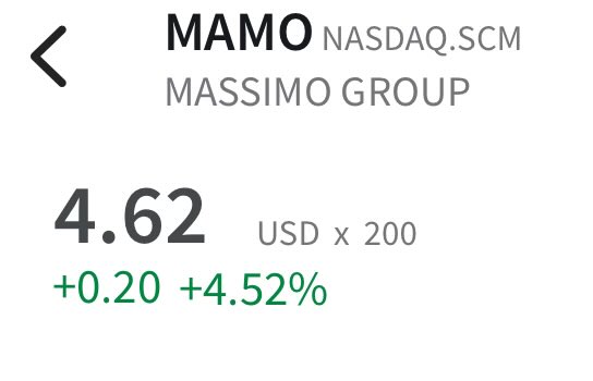 $MAMO both feet over $4. I need another $1 to break even from this accidental long term hold from a botched scalp. Expect a news spike pre-market at some stage to enable a profitable exit.