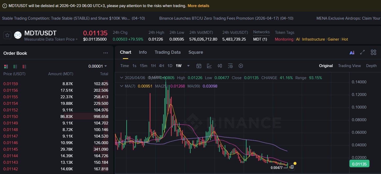 MDT experiences a short-term rally due to Binance's delisting announcement; the author warns that this is usually a pre-sale bait and recommends staying away.