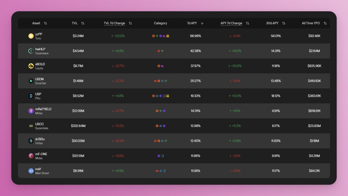 9. @MidasRWA mF-ONE: 11.96% – yield from institutional strategies. TVL -10.6%