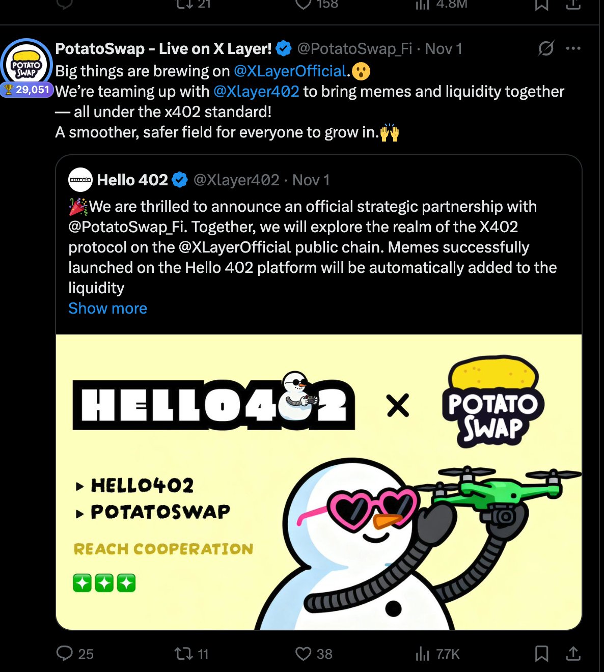 Every day on Twitter playing both sides with Binance, and then its own official account @XLayerOfficial retweeted the fled project @Xlayer402