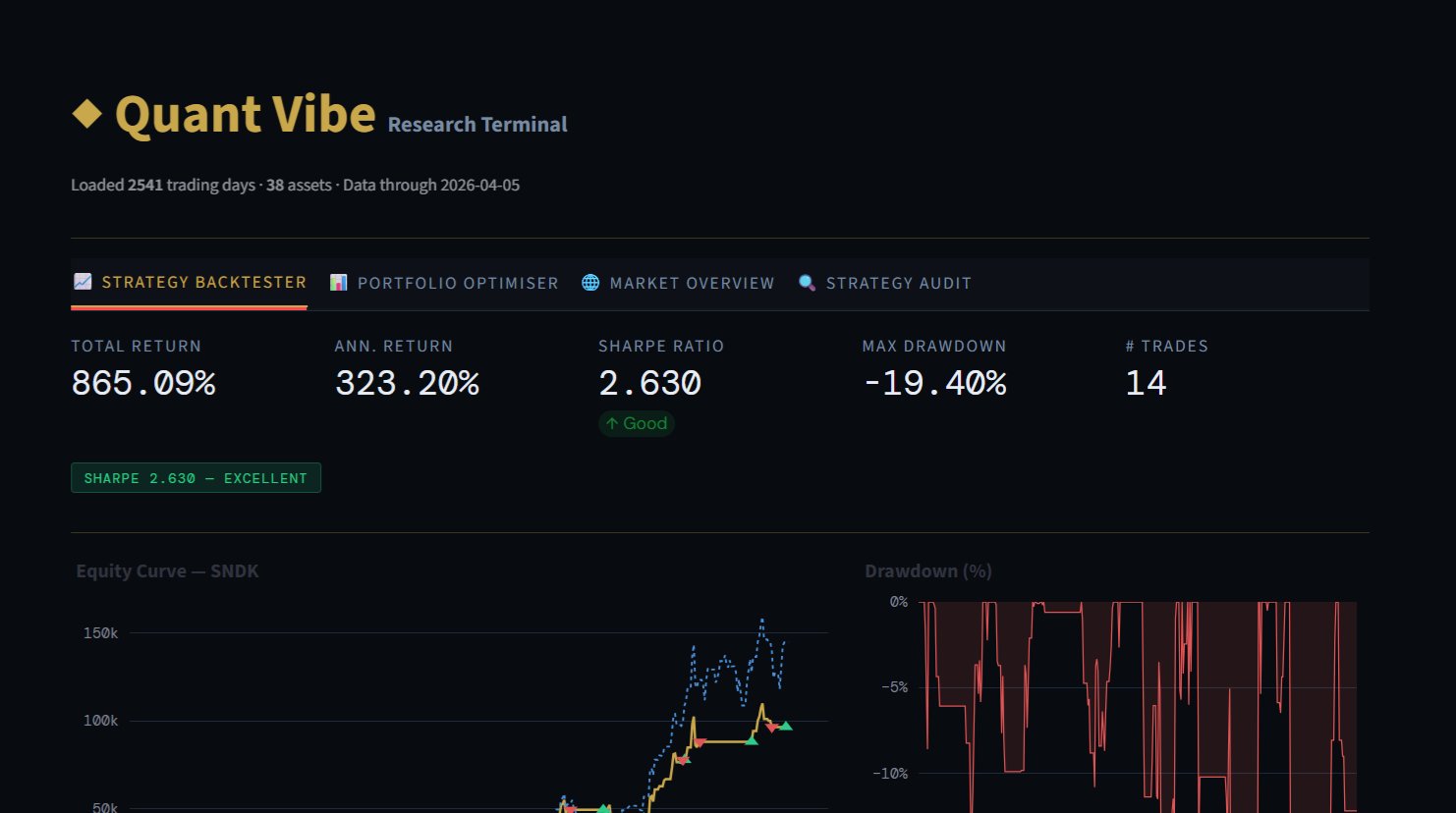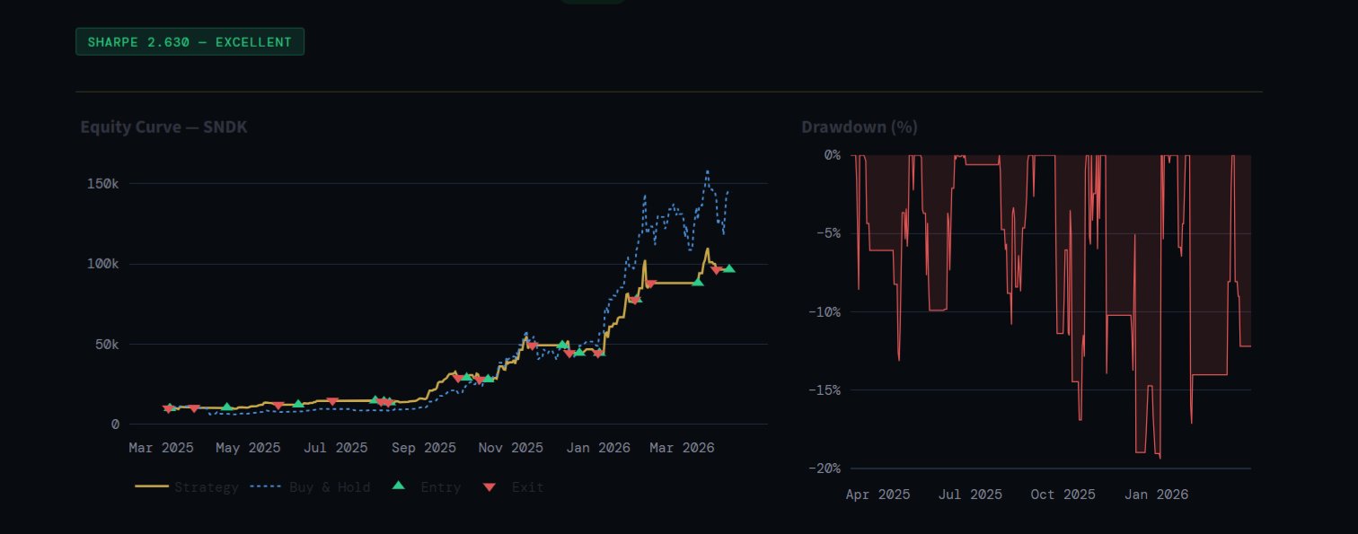 Quantitative strategy backtest shows that the total return of the SNDK crypto asset exceeds 865%, with an excellent Sharpe ratio.