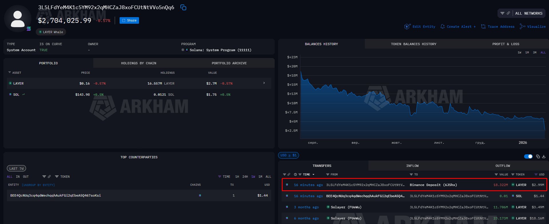 2 hours ago, another $2.1M worth of $LAYER was transferred to Binance
