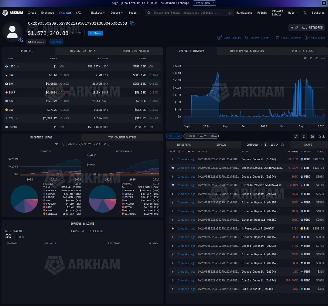 🧿💥 $SHx INTERESTING on-chain activity: 2 wallets linked via SHx inflows. One heavy in USDC + 10M SHX ($1.5M total), big stablecoin flows to CEX's like Copper/Binance. Another ETH-dom ($8.5M, ~3.7 ETH), routing thru MM's (B2C2,etc) Connected? Hypothesis incoming. (Pure spec) 1/5 https://t.co/f2ARemCBJz