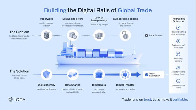 詹姆斯叉 | JamesX D44.45K @0xJamesXXXIn 2026, at this point of deep segmentation in the crypto market, we are witnessing a highly symbolic phenomenon— Projects that once survived on air narratives are gradually falling silent, while infrastructure that truly reaches the capillaries of the real economy is entering its "Age of Exploration" of thick accumulation and thin release. I have recently studied in depth the "On-Chain World Manifesto" released by @iota founder @DomSchiener, as well as the podcast in which veteran @Wuhuoqiu converses with the founder. I feel this is not just a project whitepaper, but a practical debrief of how blockchain can reconstruct global trade. I attempted to dissect, from the underlying business logic, how this decade-old infrastructure veteran carves out its own territory within the $35 trillion global trade market through vertical integration. 👇 This is a deep observation of pragmatic blockchain; I recommend friends interested in RWA and digital infrastructure read it carefully: TLDR; IOTA has chosen an extraordinarily difficult, time-consuming, yet deeply moated path. It does not chase short-term explosive myths; it pursues "non-substitutability". When 1% of global trade documents run digitally on IOTA, this network will transform from an experiment into an indispensable nervous system of the global economy. Kudos to the builders who eschew short-term noise and pioneer in the real economy. In 2026, we are at the great turning point where blockchain shifts from "toy" to "tool". 1️⃣ The origin of logic: why global trade? Not generic DeFi? The current L1 race is saturated; most public chains are locked in narrow internal loops, killing each other for existing liquidity. IOTA's brilliance lies in its "asymmetric competition" mindset. Global trade accounts for roughly 30% of global GDP, yet its underlying operating system is extremely ancient: Efficiency valley: Every day, 4 billion paper trade documents circulate worldwide; a simple cross-border order may involve 30 institutions and 240 copies. High friction: Trade-related administrative costs represent 20% of transaction volume; annual losses from forged documents reach tens of billions of dollars. Financing gap: SMEs face a $2.5 trillion financing shortfall because banks cannot transparently verify the authenticity of trade chains. IOTA does not chase Memecoin zero‑sum games; instead, by solving the above pain points, it directly taps into this blank field, ignored by traditional tech giants, yet highly dominant. 2️⃣ The power of neutrality: why IOTA succeeded while IBM failed? Many mention the IBM–Maersk partnership, but that project ultimately failed due to the lack of neutrality in its "private chain". Sovereign nations and multinational giants will never hand their lifelines to a private database controlled by competitors. IOTA positions itself as a "neutral, non‑profit, open‑source public ledger". This decentralized foundation equips it to become the "global digital public infrastructure"