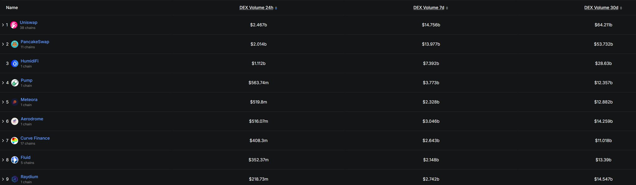 HumidiFi has become the third biggest DEX, with trading volume equal to half of Uniswap, and $WET's market cap is about $60 million.
