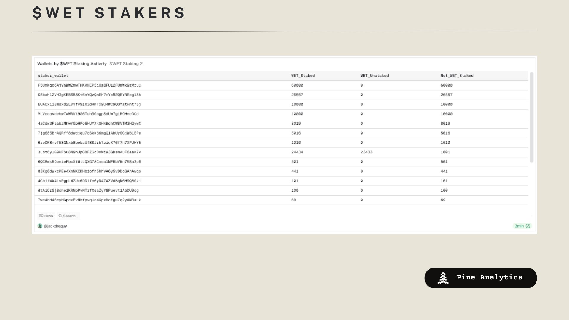 3/ When looking at the wallets staking WET, the top wallet is staking 60K WET, and fewer than 20 wallets have any $WET staked at all. Interestingly, 60K WET staked for the maximum duration doesn’t even reach the lowest tier required to qualify for any fee rebate. https://t.co/fEJyfWVHoO