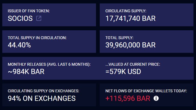 Regarding the supply distribution of Fan Tokens, you can forecast these on the individual token pages on Rocketfan. There is a field called 'monthly releases', which shows you the average amount of tokens released in the past six months for each token.