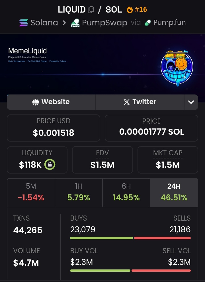The author bought LIQUID, believing it surpasses meme coins, with a 24‑hour gain of over 46%.