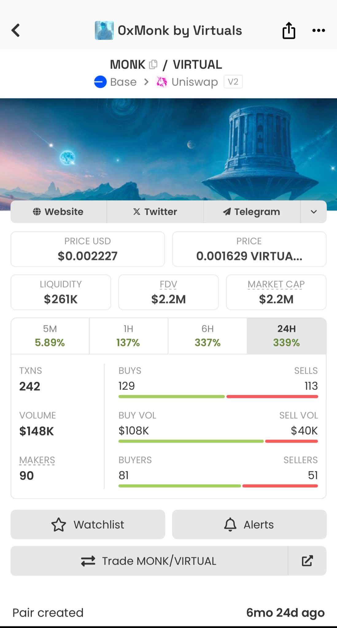 Wow, $MONK just pumped 339% and still sits at a $2M FDV. that’s nuts.