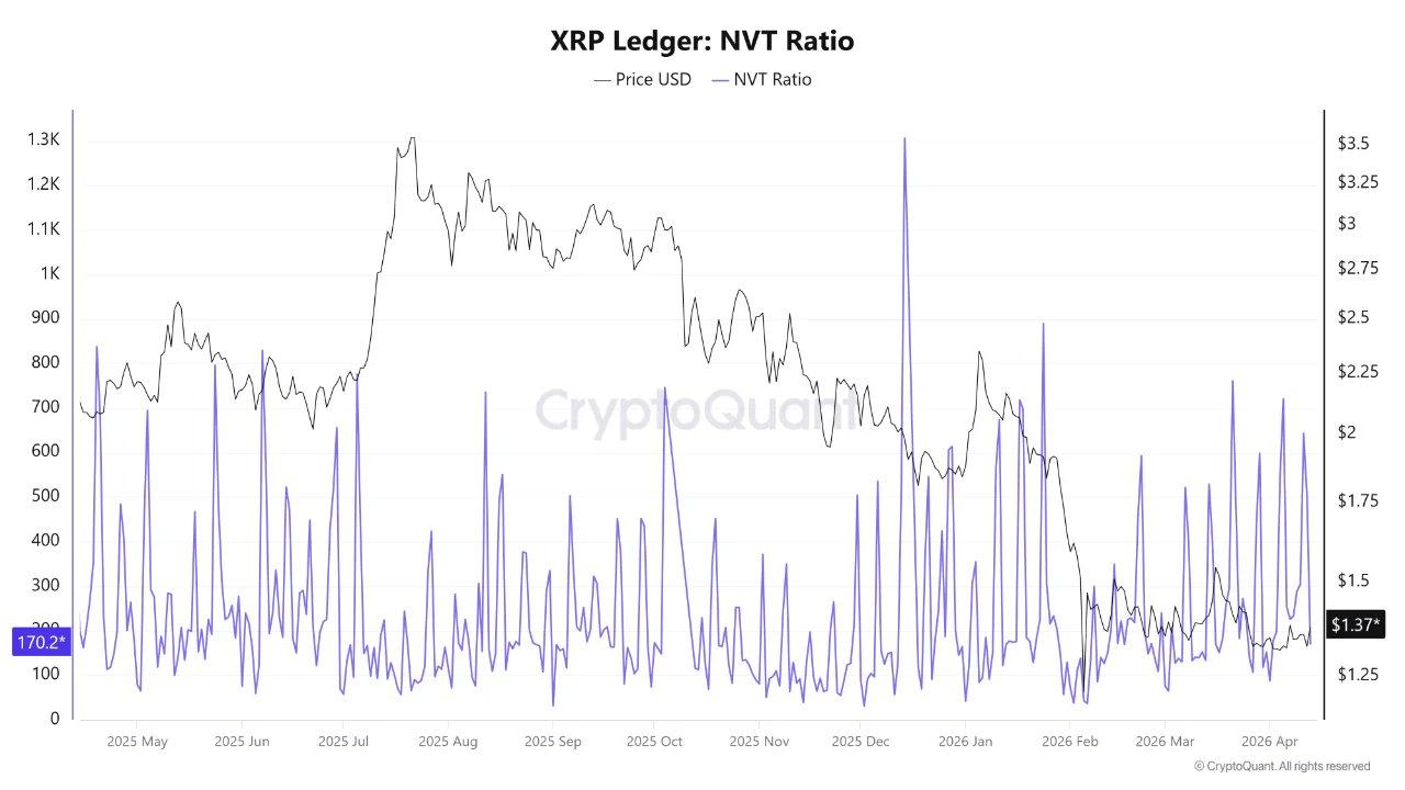 XRP on-chain data (NVT Ratio) shows a strong bullish signal, indicating the price may breakout.