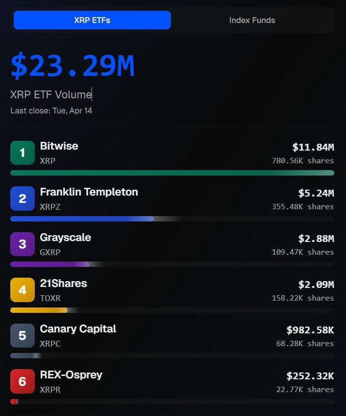 XRP ETF daily trading volume reached $23.29 million, strong institutional demand, Bitwise XRP performed outstandingly.