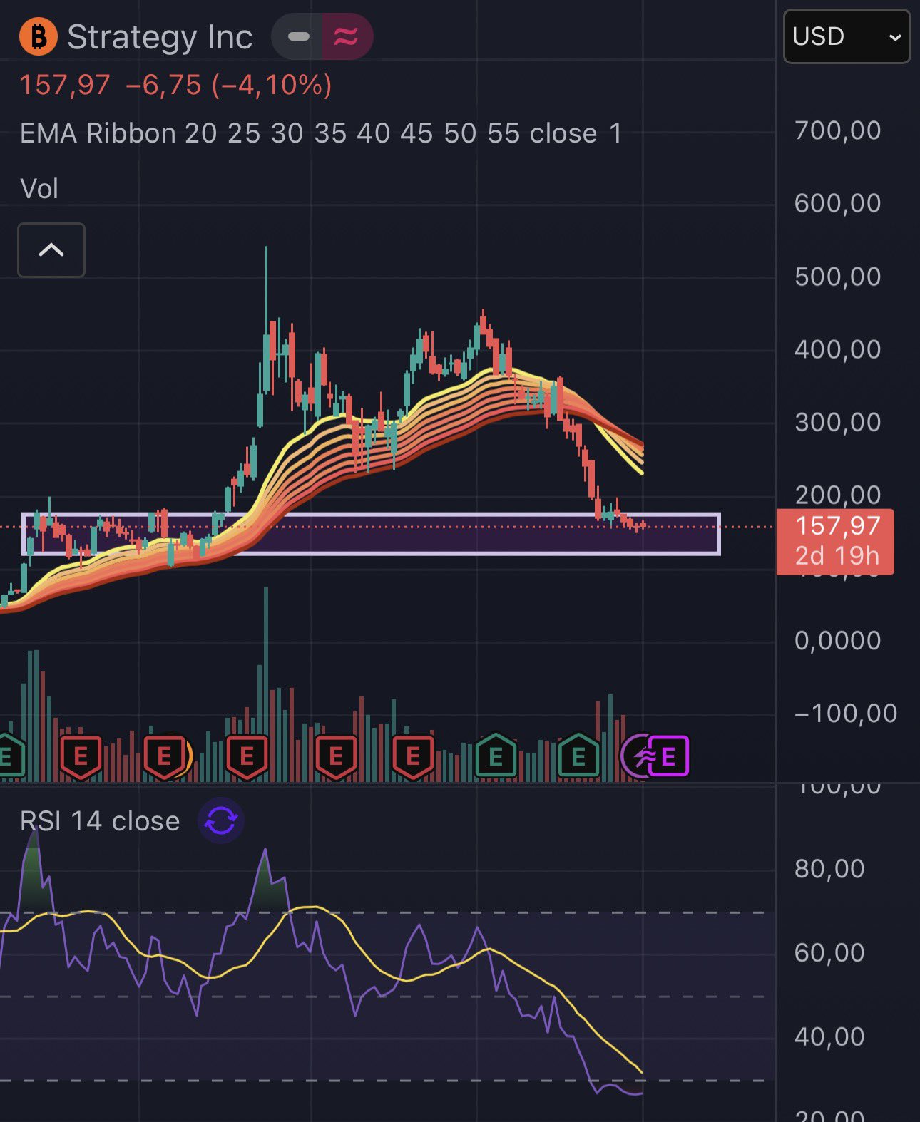 $MSTR Strategy's stock is at incredible oversold levels. The best buys happen at these moments. It's a stock but you know things are already moving fast so you can have it on Gate io under the name $MSTRX. for those who are fed up with altcoin volatility lol.