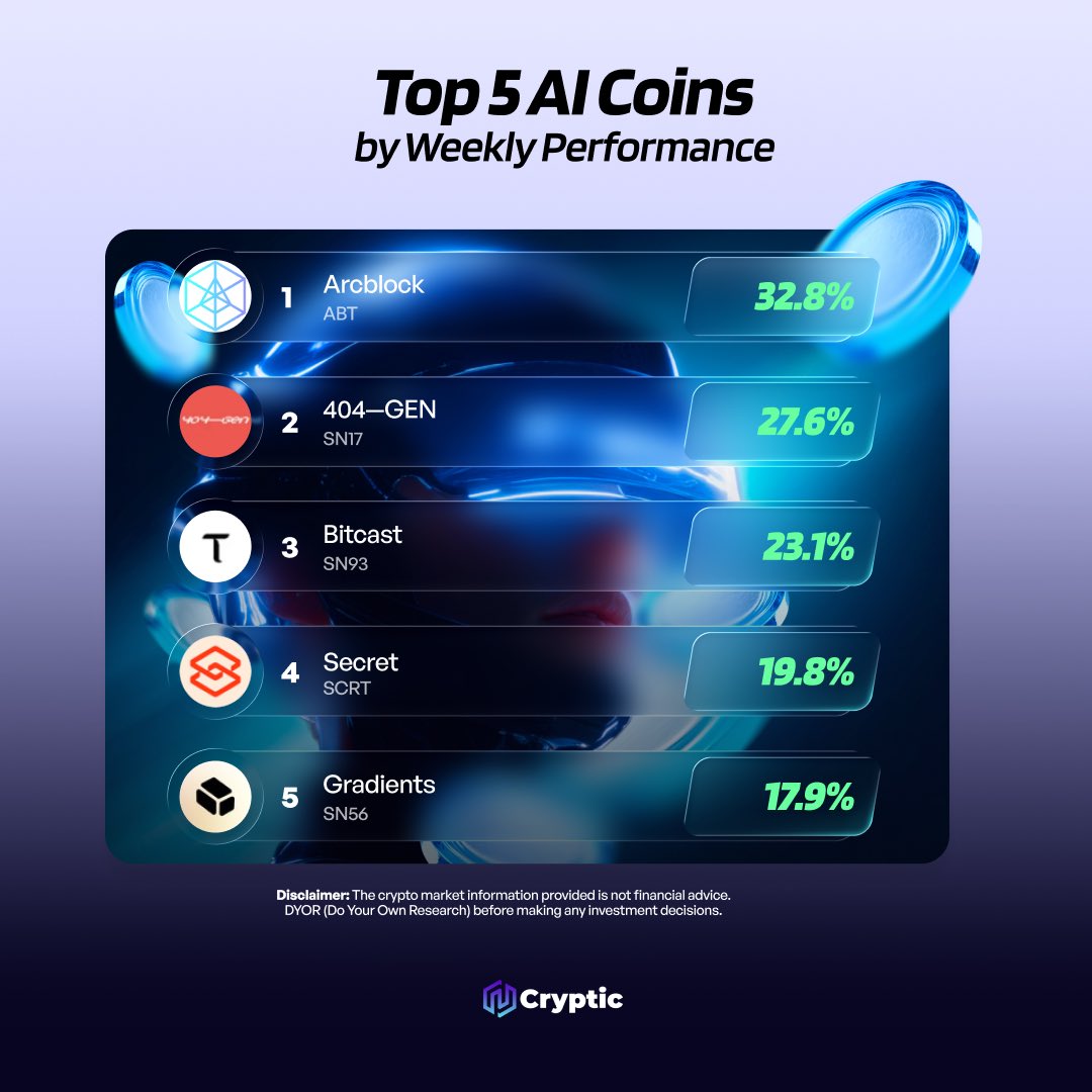 🤖 Top AI Coins by Weekly Performance! 🤖