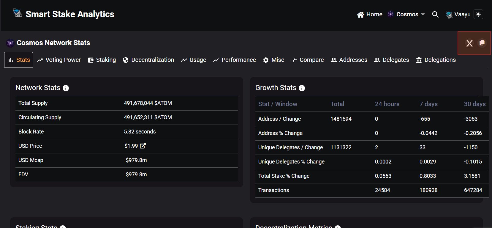Smart Stake Analytics推出新功能,允许用户分享Cosmos网络(ATOM)的统计数据。