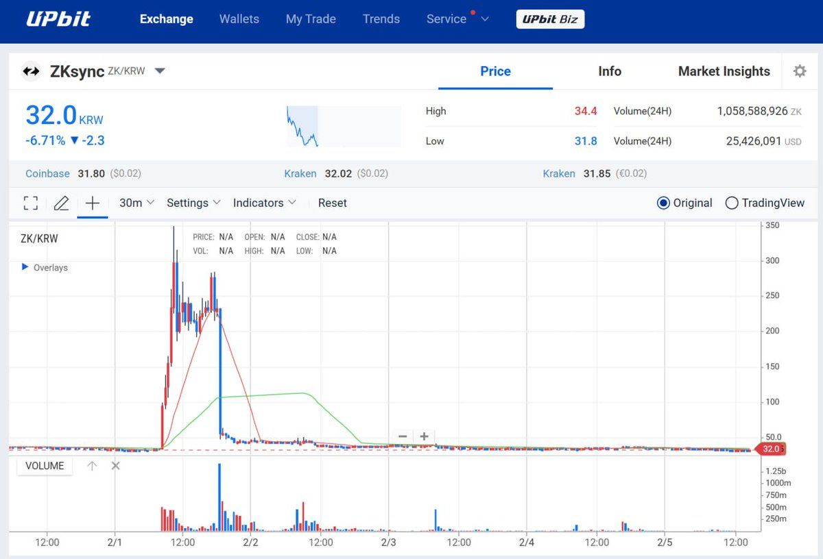 South Korea’s Financial Supervisory Service is monitoring the market for ZK tokens listed on Upbit, the country’s largest cryptocurrency exchange, following abnormal price fluctuations. On February 1, ZK surged nearly 1000% in just three hours, rising from 33 KRW to 350 KRW, before quickly falling back. https://t.co/GP8s5FNRhp