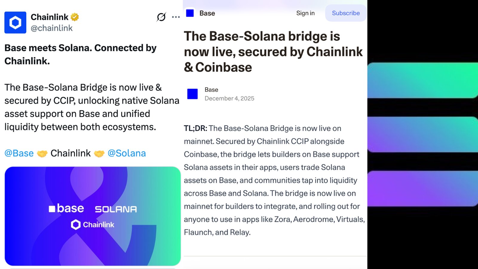 NEW: BASE-SOLANA BRIDGE GOES LIVE - CONNECTED BY CHAINLINK https://t.co/UlpqSMq7Zy