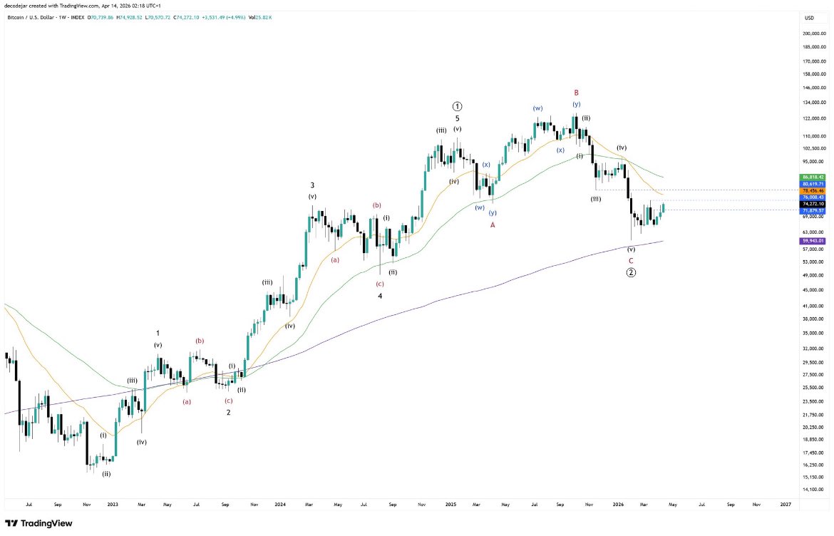 Bitcoin Elliott Wave count remains, but WMA 200 raises concerns, still needs attention.