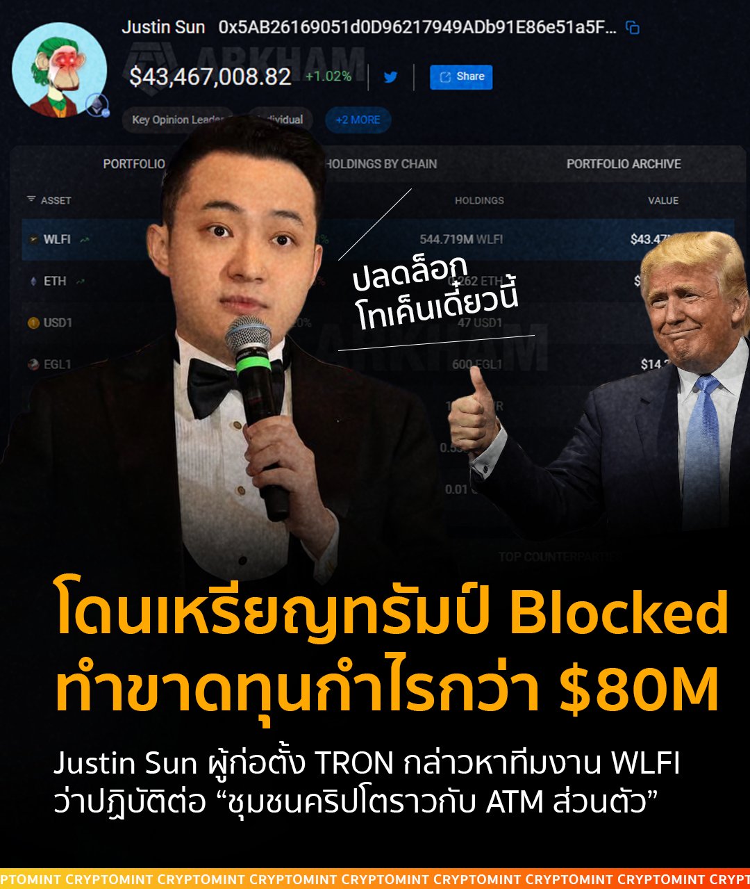 🚨JUST IN: @justinsuntron says the $WLFI team treated “the crypto community as a personal ATM,” citing the ongoing scandal and the project’s blacklisting of his $WLFI wallet in 2025. https://t.co/uNffJLGLjs