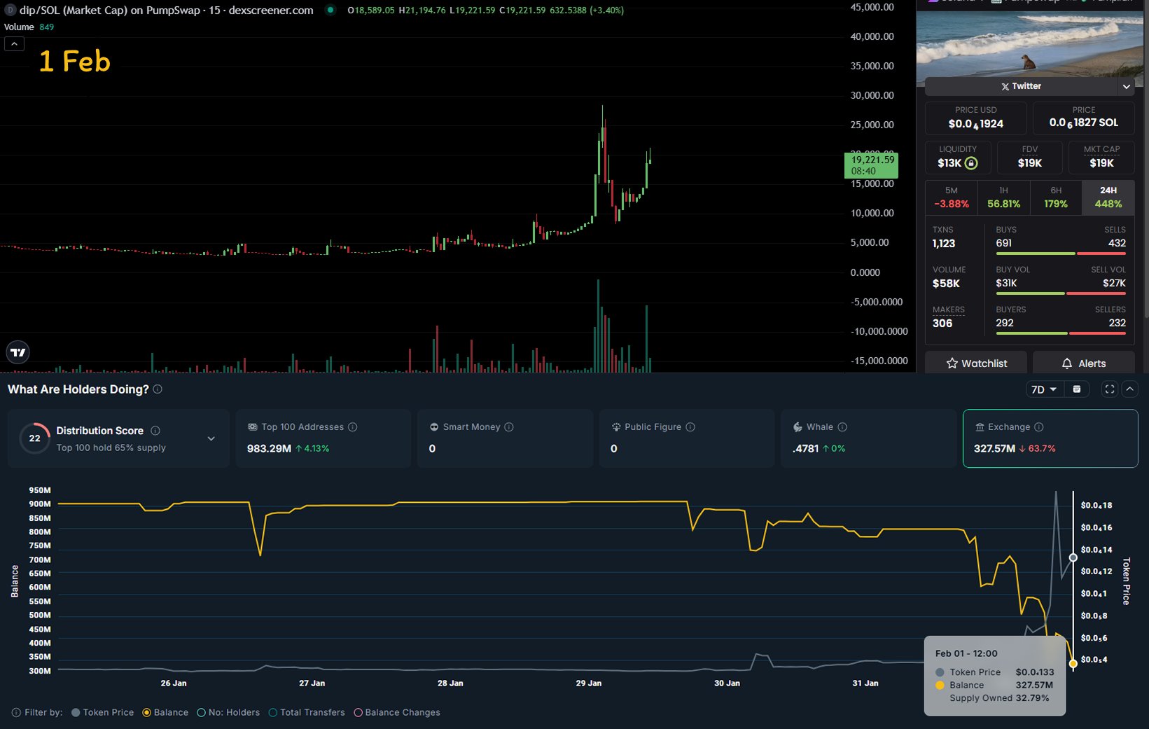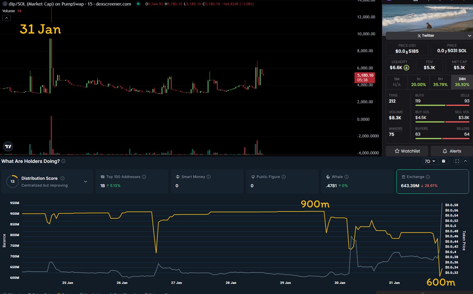 DIP token experienced significant accumulation, with market cap rising from 5K to 20K, and the author has bought a small amount.