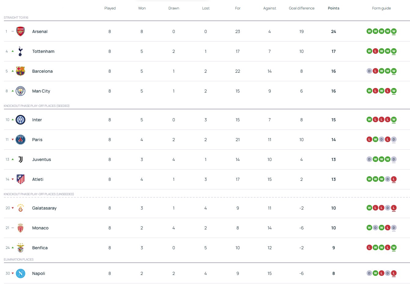 ⌛️ $SPURS, $PSG, $BAR, $CITY, $ATM, $INTER, $JUV are qualified for the play-offs and could still move into the top 8.