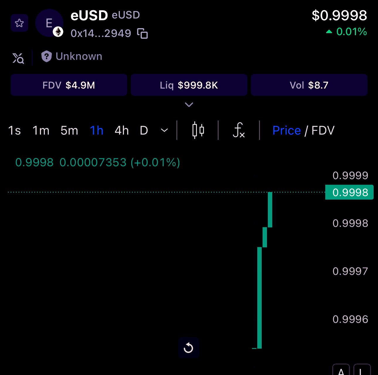Currently 4 $eUSD holders and 9 transactions on Base chain.
