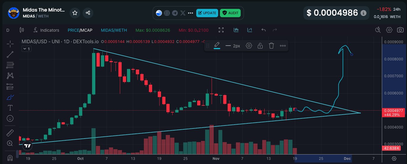 MIDAS token forms a bullish triangle zone, expected to surge sharply after a breakout on Dec 3.