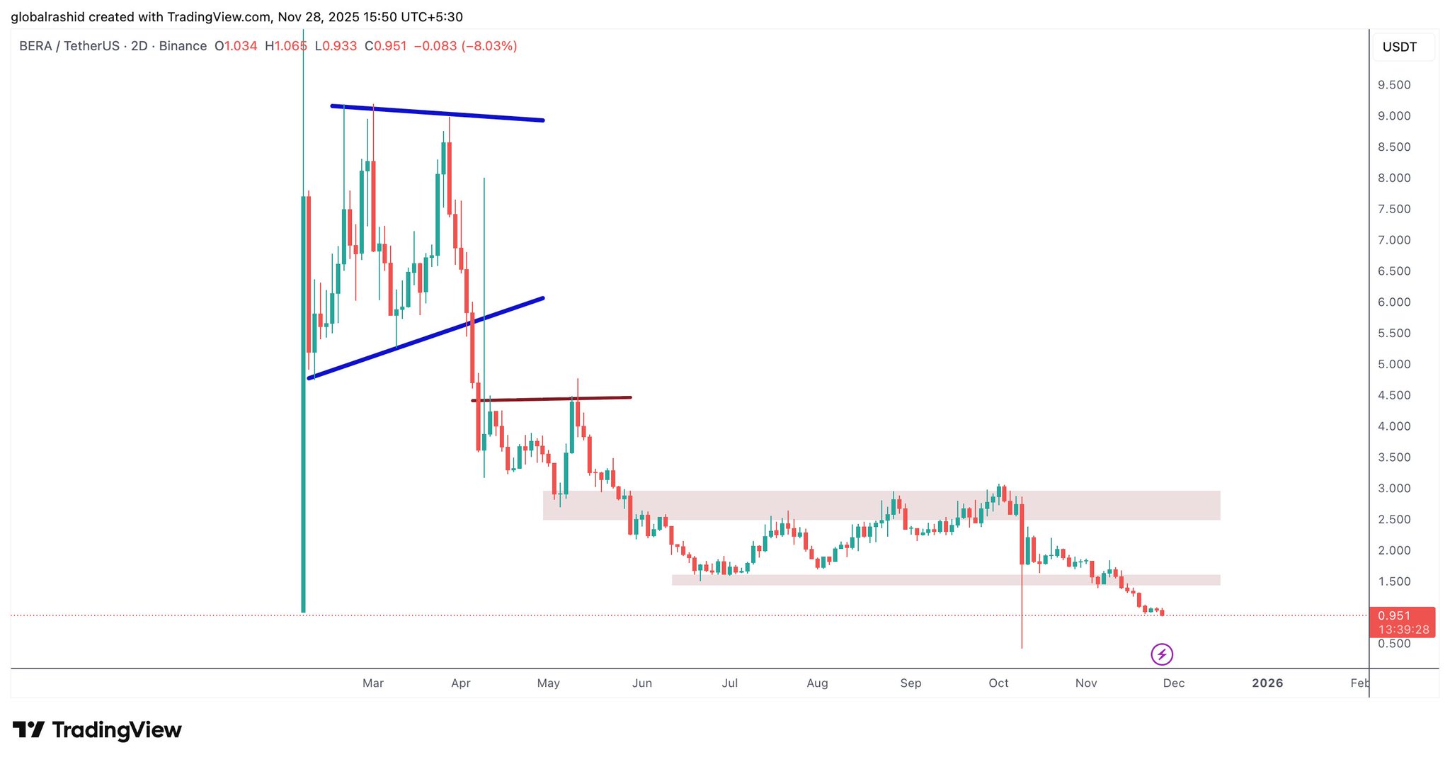 Global Rashid Educator TA_Analyst C19.63K @globalrashid00712 3 1.05K Original >Trend of BERA after releaseExtremely Bearish