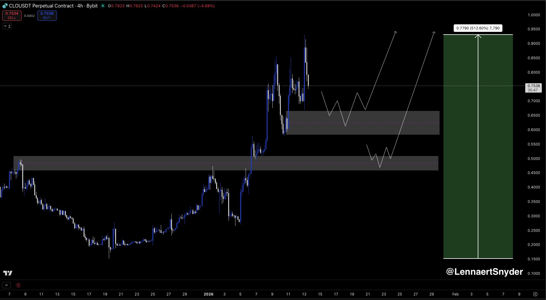 Lennaert Snyder TA_Analyst Trader A38.35K @LennaertSnyder$CLO pumped +512% in 1 month. I guess successful token launches are still possible in this market, and Yei Finance is obviously showing that. The token went live on October 14th 2025, and basically has been in an uptrend since. For potential long setups, I'm looking at two scenario's here. Remember this is not the time to fomo into longs, strong pumps have strong pullbacks. The first support zone that's interesting to me, is the upper ~$0.64 box. If price tests this region, I'll give it some time to consolidate and execute longs on quality reversals (H1 minimum). There's also interesting liquidity to be found at the ~$0.485 imbalance. Same strategy here, let price consolidate, and opening longs after quality reversals. Yei Finance is the top DeFi-protocol on Sei Network. I did some digging, and apparently there are more token launches coming from the SEI ecosystem. Seeing this, it might be worth it to carefully monitor next token launches from the Sei ecosystem. When you want to trade new tokens, remember to always let price form a structure first. And when confirmation is there, we strike.