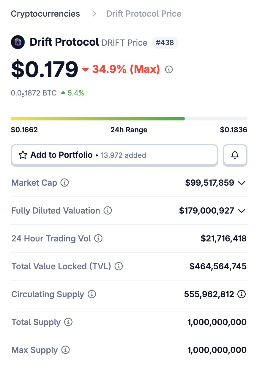 - SummaryDRIFT up 7.9% in 24h, social heat down 21%, tweet interactions extremely low