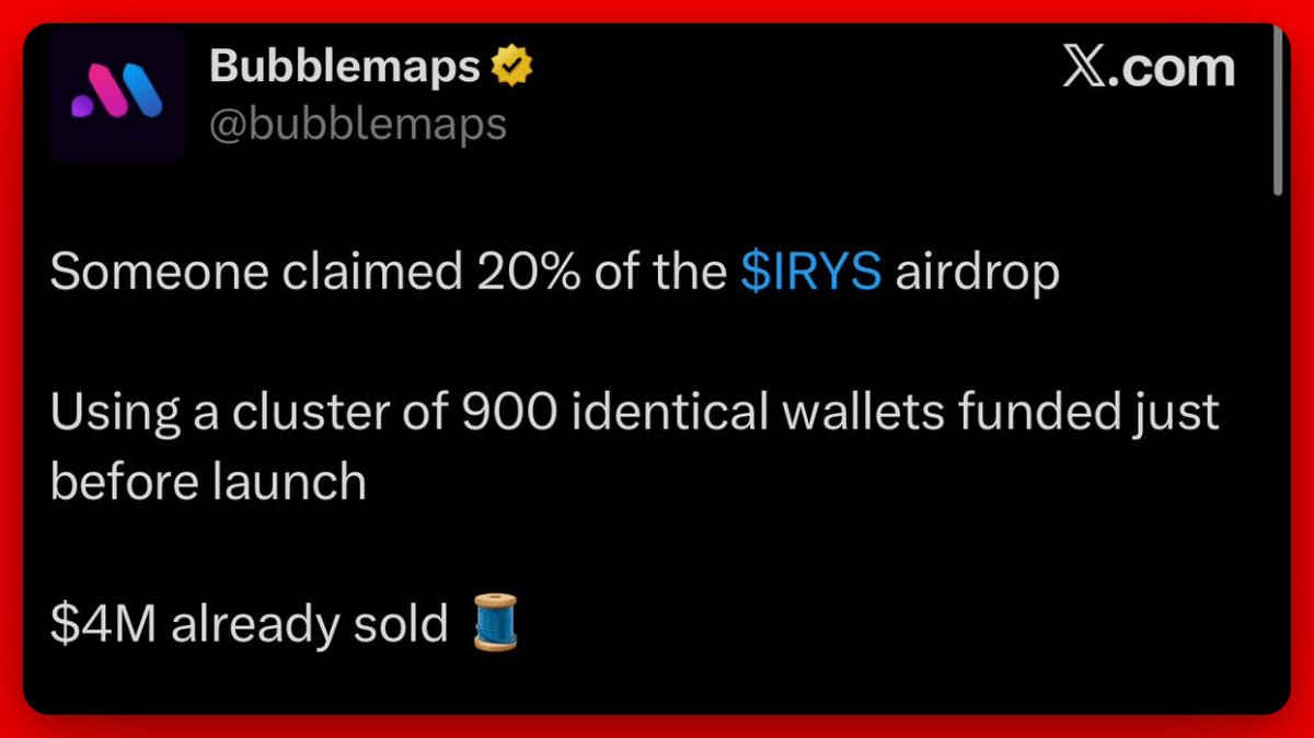 Bubblemaps OnChain_Analyst Researcher C275.92K @bubblemaps550 185 121.14K Original >Trend of IRYS after releaseBearish
