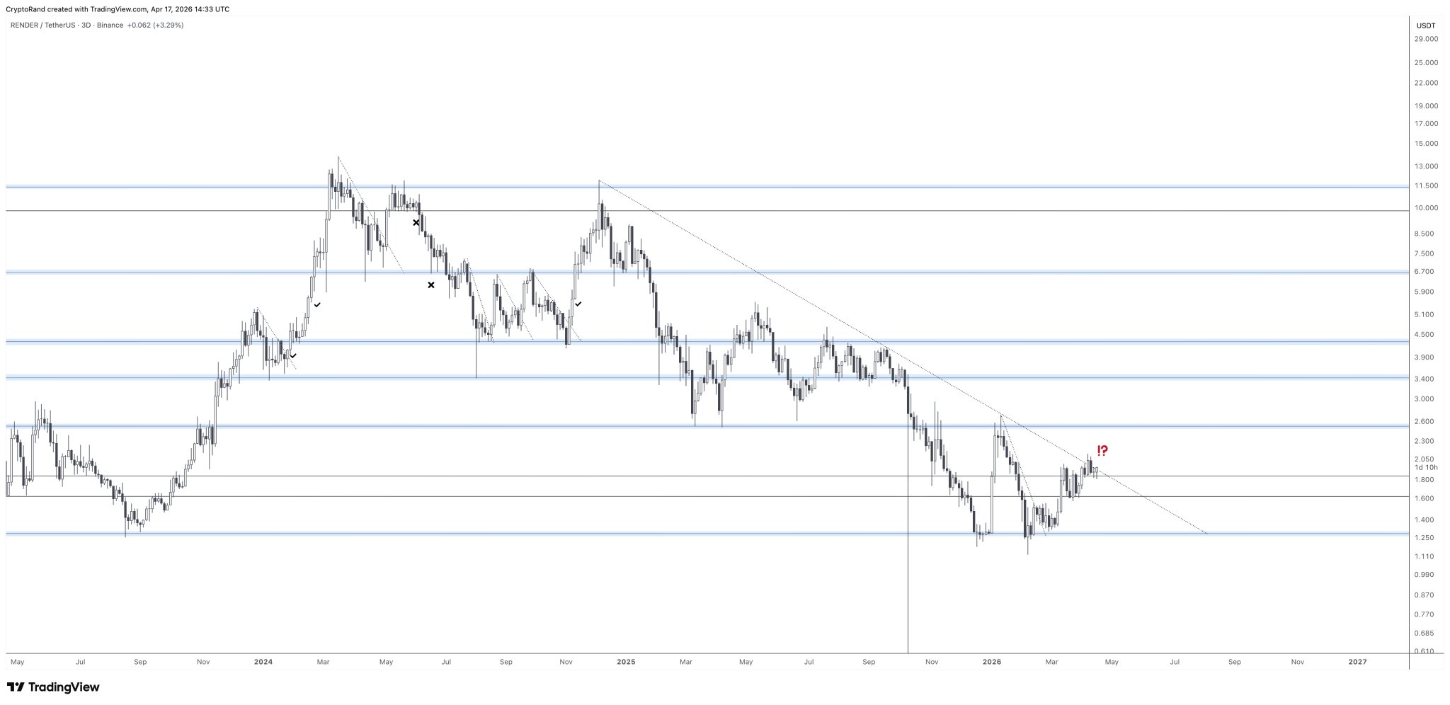 Rand Group Trader TA_Analyst C339.90K @cryptorandEyes on $RENDER pushing for a massive bullish breakout over the main downtrend resistance https://t.co/dVl9777FBa