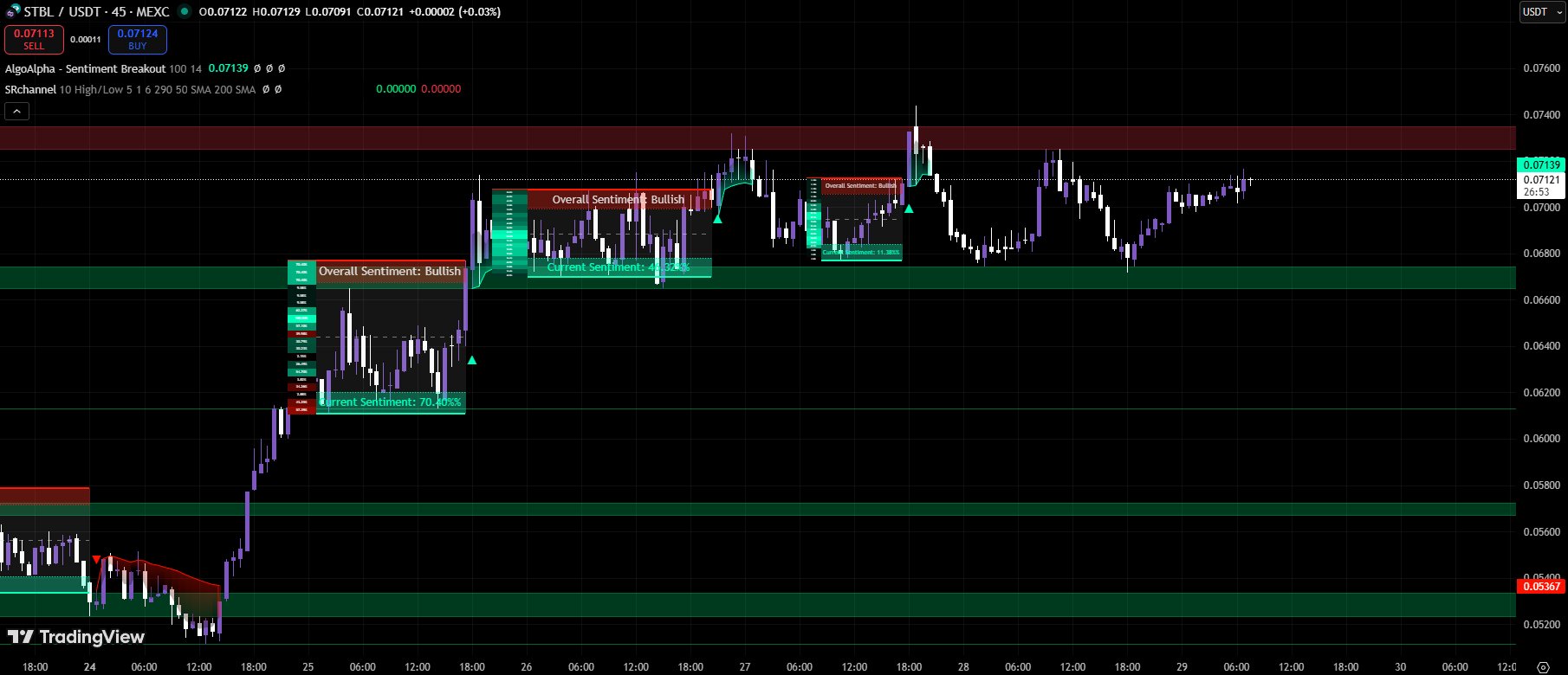 Quadrix Researcher Educator A3.13K @Qu3drixall I can see on the $STBL is green and bullish sentiment $STBL just had one of those 24-hour windows where the market pretends it’s unsure, but the underlying momentum is quietly loading energy you can feel it the kind of slow-burn confidence that doesn’t shout, just builds the liquidity rotation is tightening, the volume shifts look intentional and the sentiment is starting to flip from “wait and see” to “okay… something’s forming here” projects with real collateral mechanics and yield infrastructure don’t stay overlooked for long (especially not in this market cycle) the setup is quite simple imo: when fundamentals stay intact, and the chart stops bleeding, catalysts don’t need permission to show up call it early, but $STBL looks like it’s gearing up for its next leg the kind of move people pretend they “saw coming” after it’s already halfway there energy’s rising, momentum’s waking up wouldn’t be surprised if @stbl_official becomes one of the louder names on the feed soon