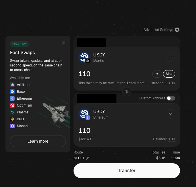 코루🍊 .edge🦭 FA_Analyst DeFi_Expert B35.13K @colu_farmerRumor has it that $STBL's Yaping is sweet Many people are trying to earn the badge… Indeed, holding both badges significantly boosts efficiency. Especially since the campaign runs for five months, it seems even more essential. However, USST minting by @stbl_official is quite challenging. Specifically, acquiring USDY on the ETH network wasn't easy… I wasted a lot of time wandering about what to do… So I’m sharing a simple guide so you don’t have to go through the same hassle. At first the Mantle bridge didn't work, so I wondered if I needed to mint on 온도파이낸스, but saw the minimum mint amount is about $500, which was discouraging. Solved it so easily lol;; ---- 1. Buy USDY on Bybit and purchase MNT for gas fees. 2. Transfer to the Mantle network (Ethereum is currently blocked). 3. Use the Stargate bridge Bridge USDY (Mantle) → USDY (Ethereum). At 110 USDY, gas fee is $3 and takes 16 minutes. 4. Mint USST with USDY on @stbl_official's official website ([Mint] page). Done. ---- Really that simple? It took me 30 minutes of fiddling around before I got it, lol. Looks like about $100 gets the boost applied. Since there’s a bridge fee, moving some over in advance is convenient. ---- $STBL staking is nothing special. Just buy $STBL on the BSC network and stake it.