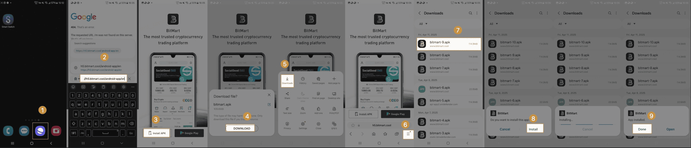You can copy the following link directly and open it in your mobile browser to complete the download and installation. - Step1: Open the link in your mobile browser, and click [Install APK] to download the BitMart App.