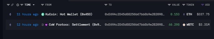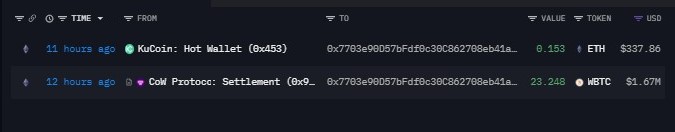 Four wallets--likely tied to the same entity, quietly accumulated 112.86 Wrapped $BTC over the past 12 hours, putting in about $8.08M at an average around $71,655. And just like that… they’re already sitting on roughly $312K unrealized profit.