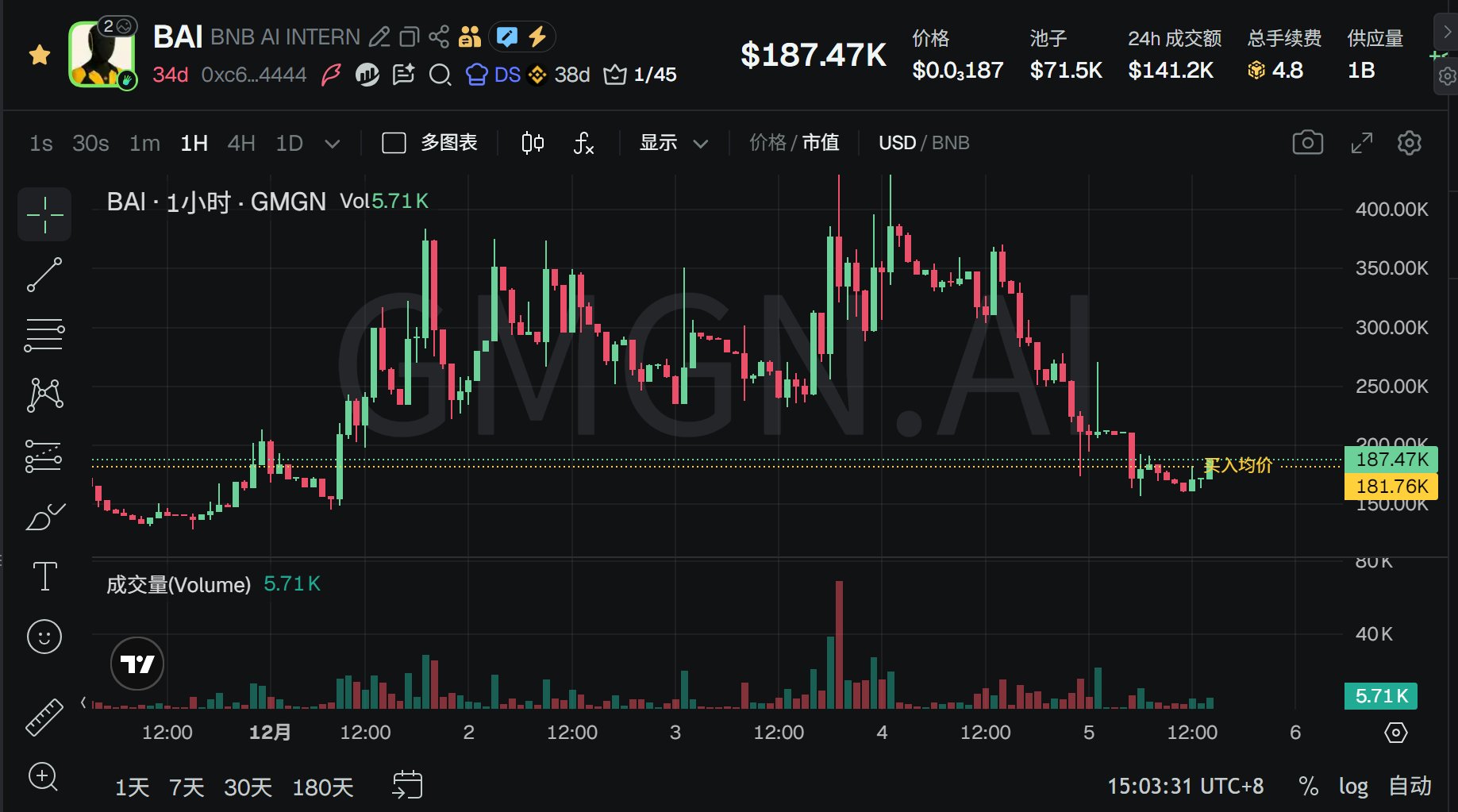 Looking at the candlesticks, #BAI’s first wave peaked at over 1 million and has since been oscillating in the several-hundred-thousand range. The overall trend is relatively stable, and the bottom-building signs around a few dozen thousand are clear. As long as the coin isn’t dead, there’s still upside potential, so the cost-performance of entering remains high.