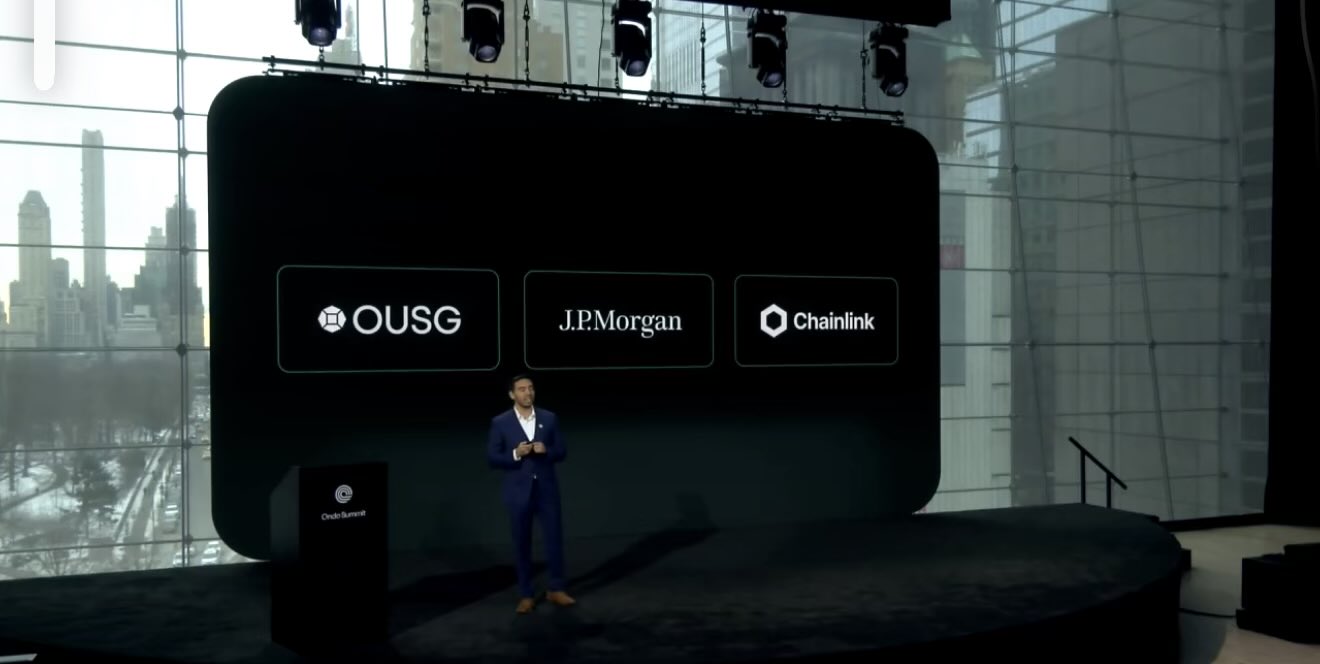 Chainlink and JP Morgan at the Ondo Summit together, showing progress in institutional collaboration.