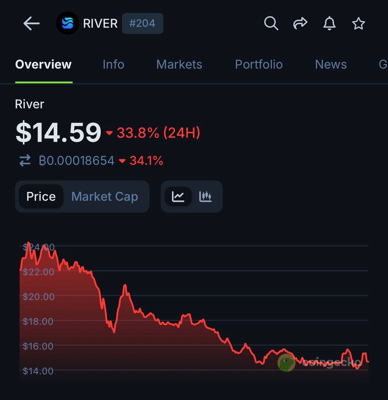 Even though RIVER fell sharply by 33.8% today, the author remains extremely bullish and confident about its future performance, waiting for market recovery.