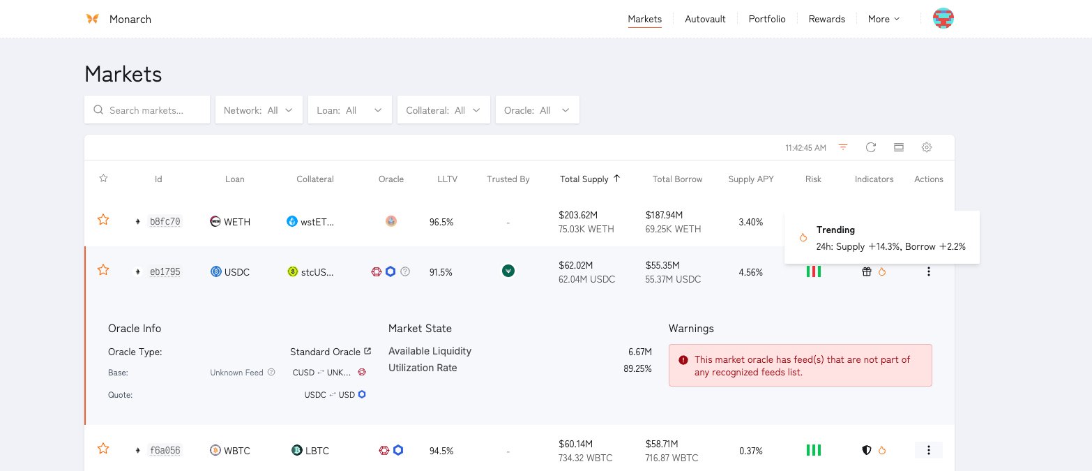 Monarch platform releases a major upgrade, improving liquidity and data insights, with active market supply and borrowing activity.