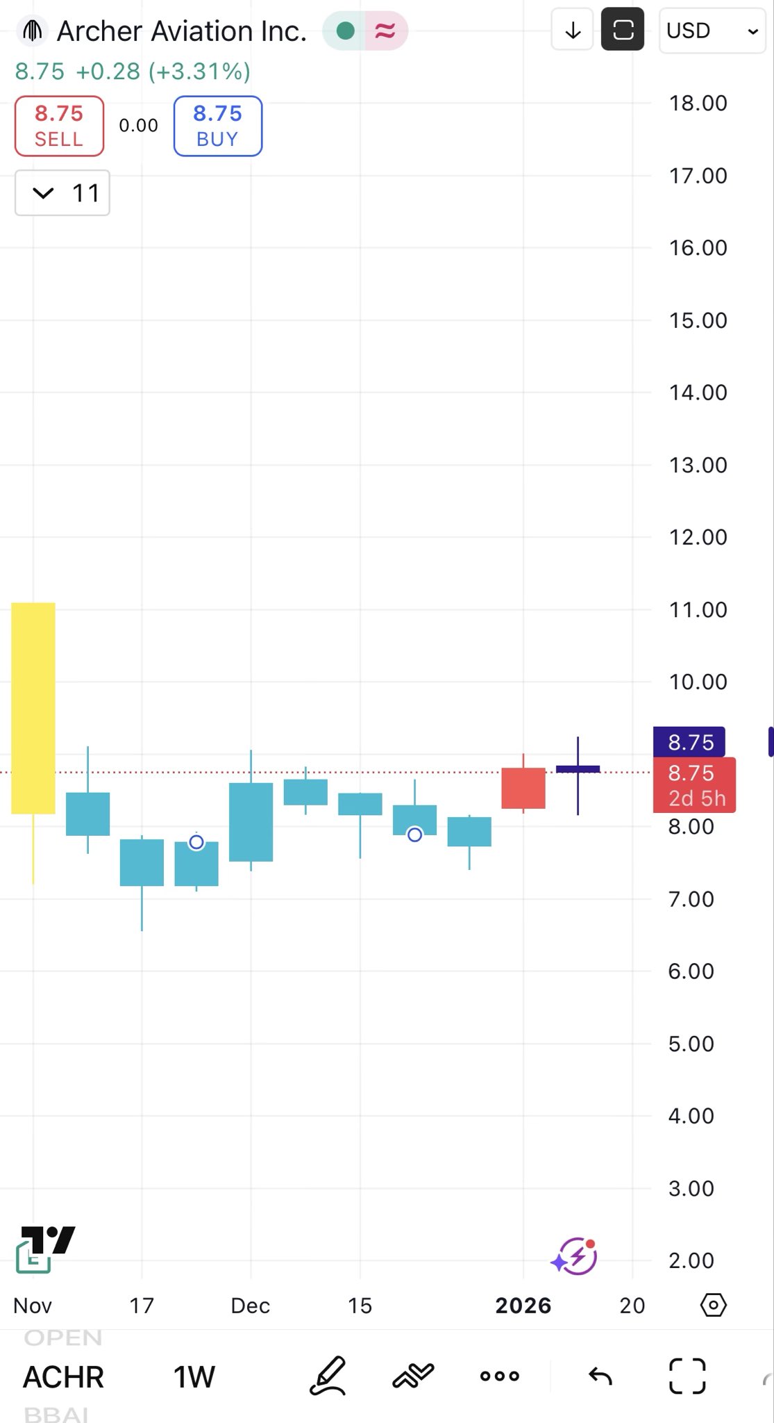 1 0 262 Original >Tendencia de ACHR tras el lanzamientoAlcista- Tendencia de ACHR tras el lanzamientoAlcista