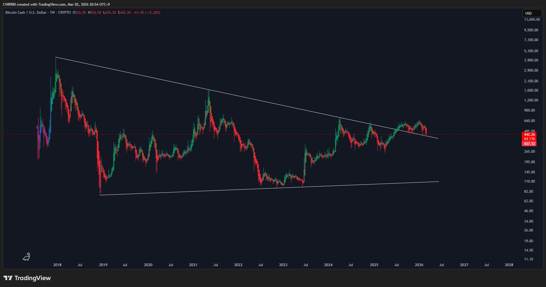 - Tendencia de BCH tras el lanzamientoExtremadamente bajista
