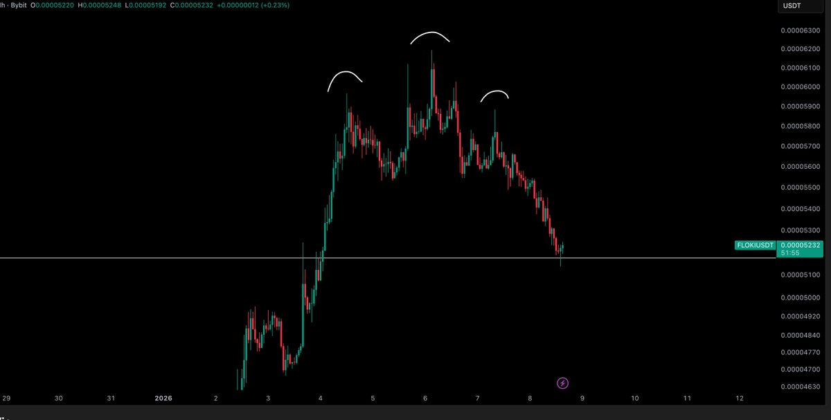 - Tendencia de FLOKI tras el lanzamientoBajista