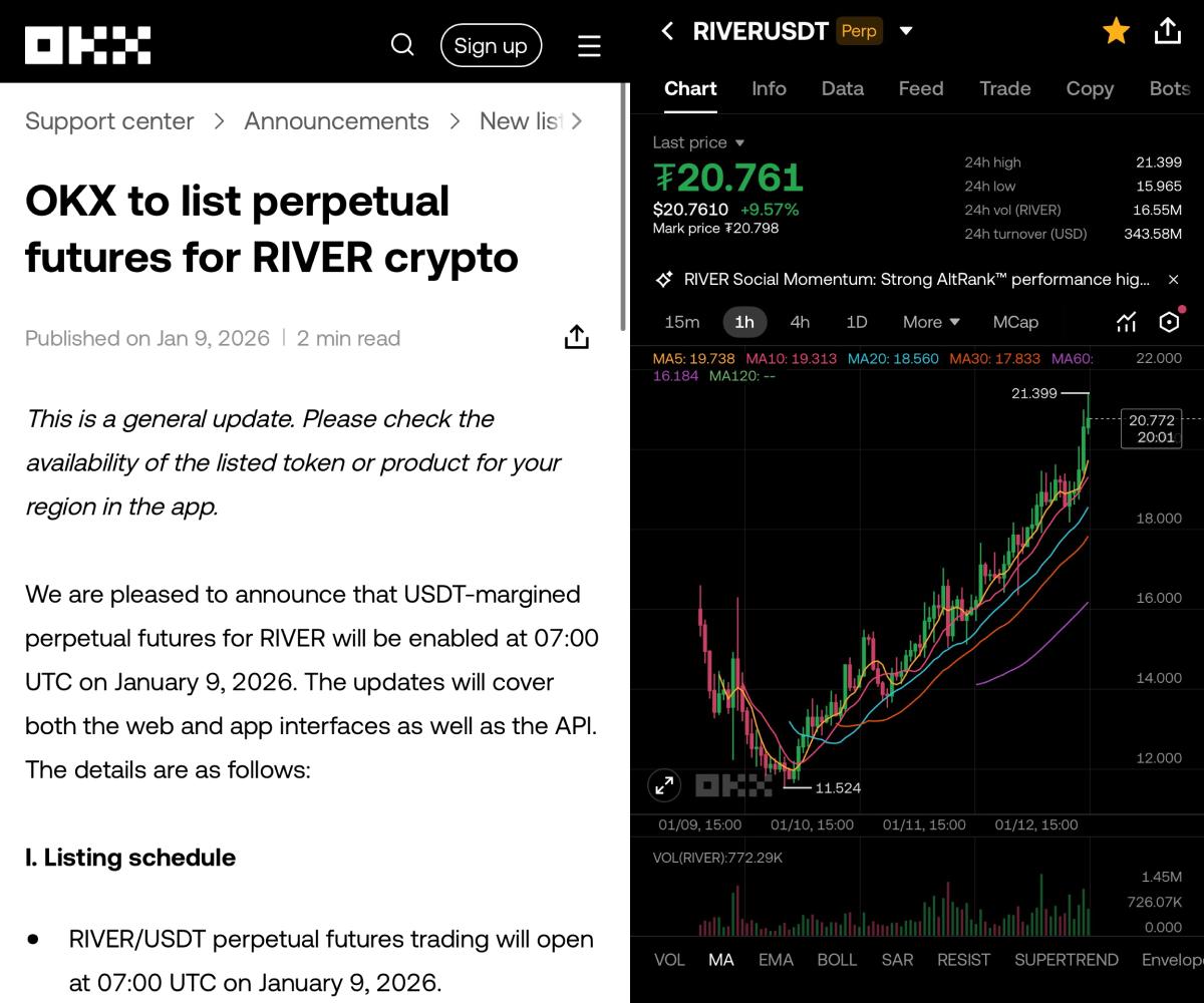 - Tendencia de RIVER tras el lanzamientoExtremadamente alcista