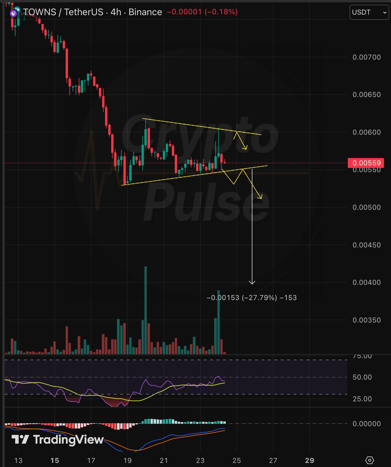 CryptoPulse TA_Analyst Trader D29.63K @CryptoPulse_CRU2 1 734 Original >Tendencia de TOWNS tras el lanzamientoBajista- Tendencia de TOWNS tras el lanzamientoExtremadamente alcista
